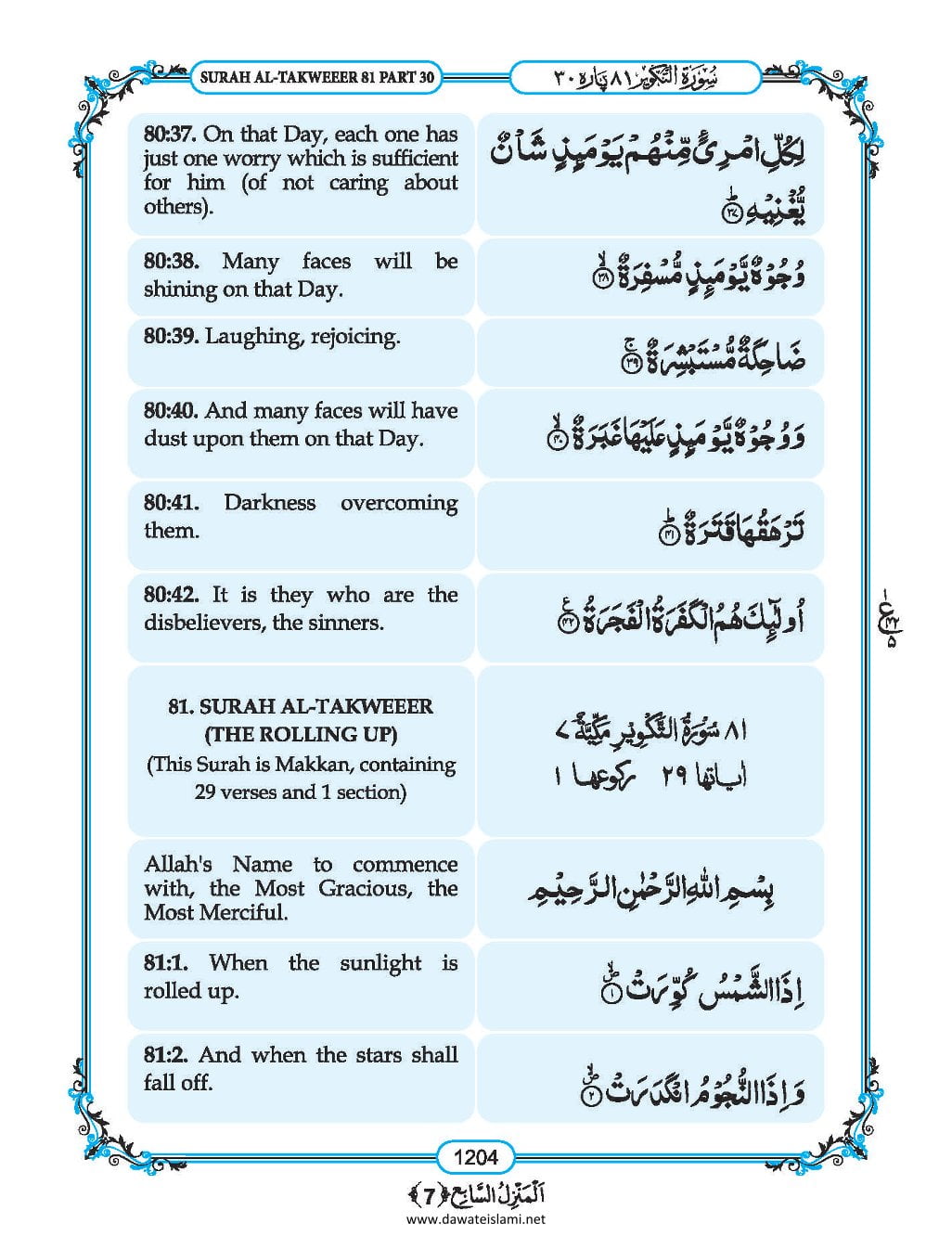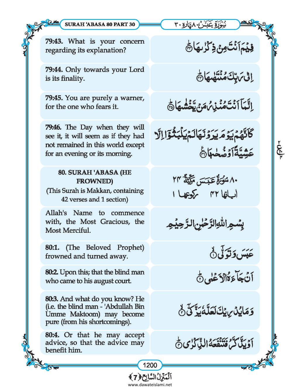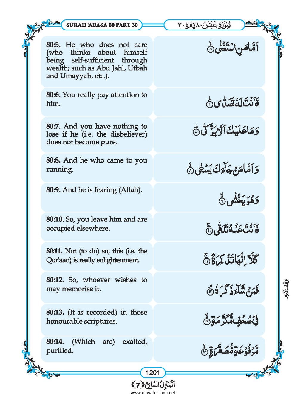 Surah Abasa English Translation & Roman Transliteration