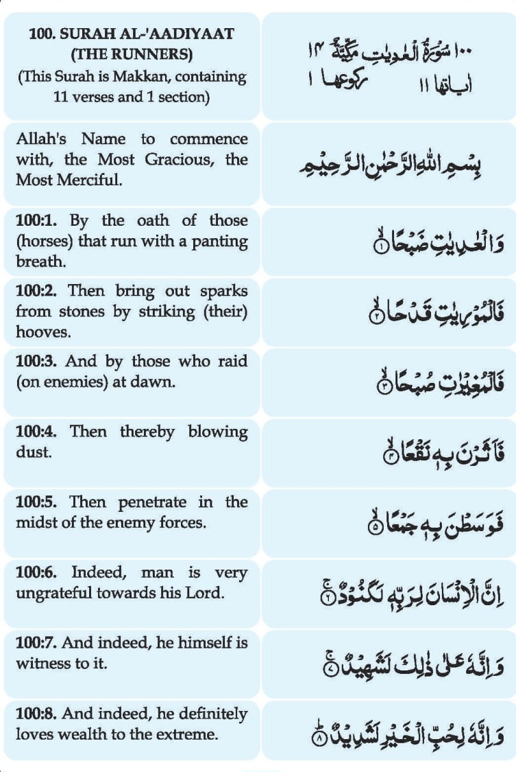 100. SURAH AL-‘AADIYAAT (THE RUNNERS)