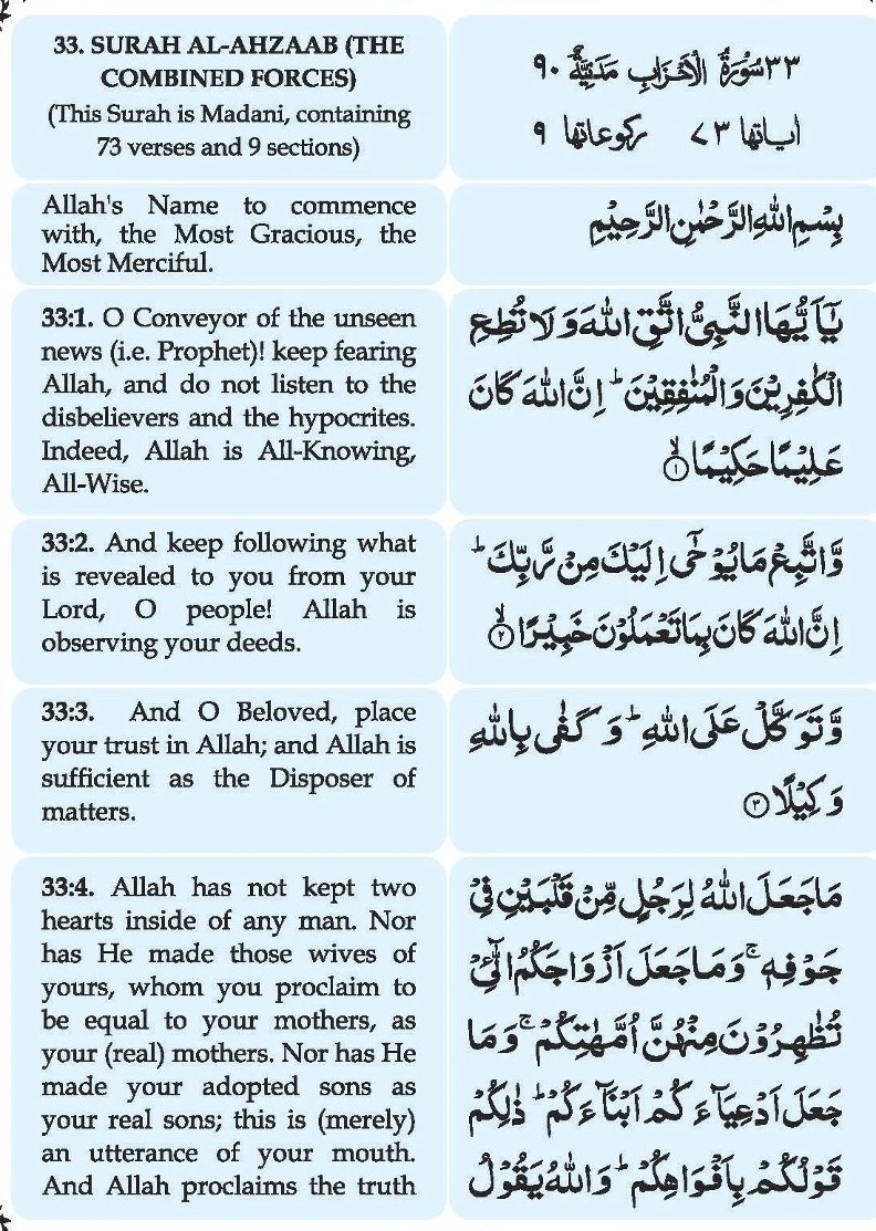 Surah Al-Ahzab English Translation & Roman Transliteration