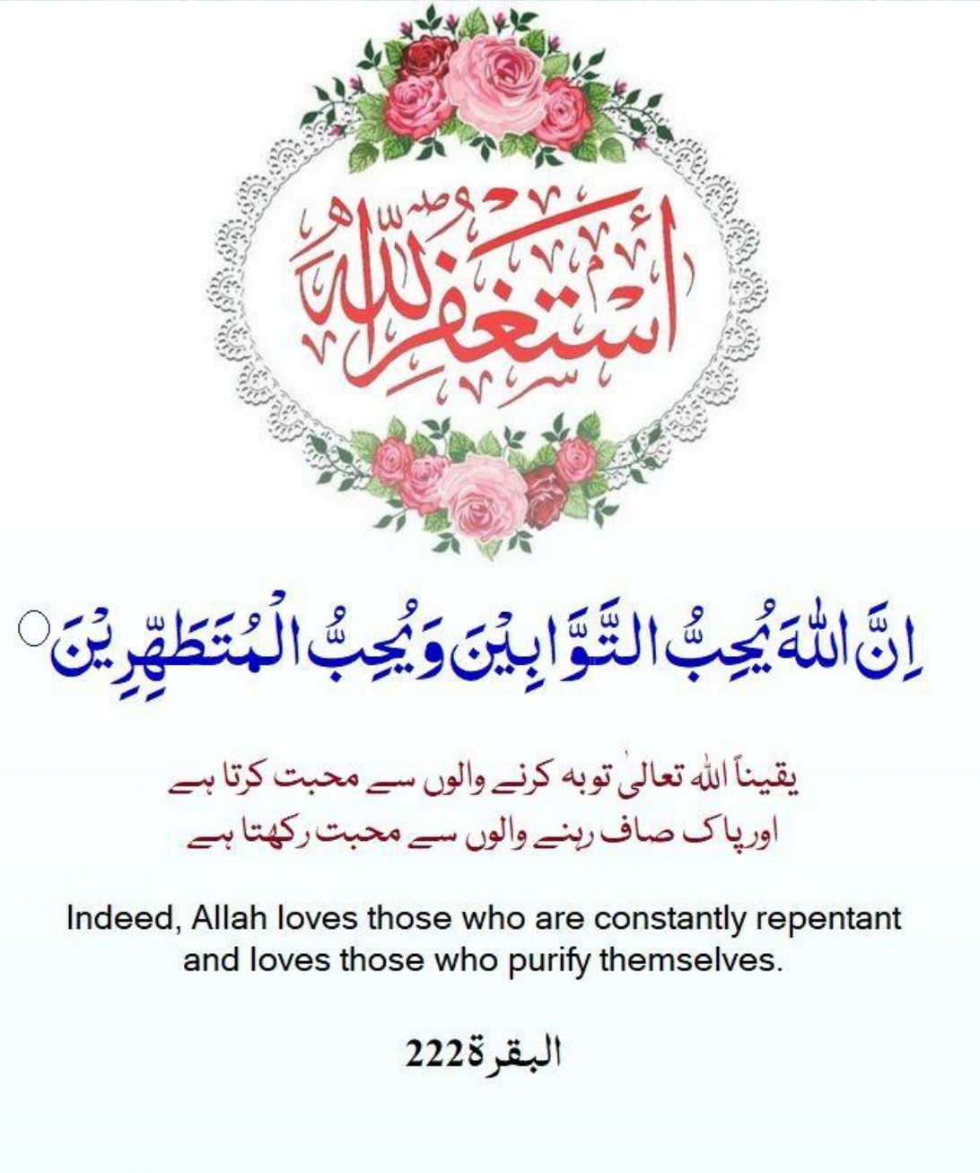 2:222. And they ask you (O Beloved) the ruling regarding menstruation. Say you, ‘It is impurity, so stay away from women in the days of menstruation, and do not approach them until they are pure. Then, when they become pure, so approach them from where Allah has commanded you.’ Indeed, Allah loves those who repent abundantly and loves those who purify themselves.