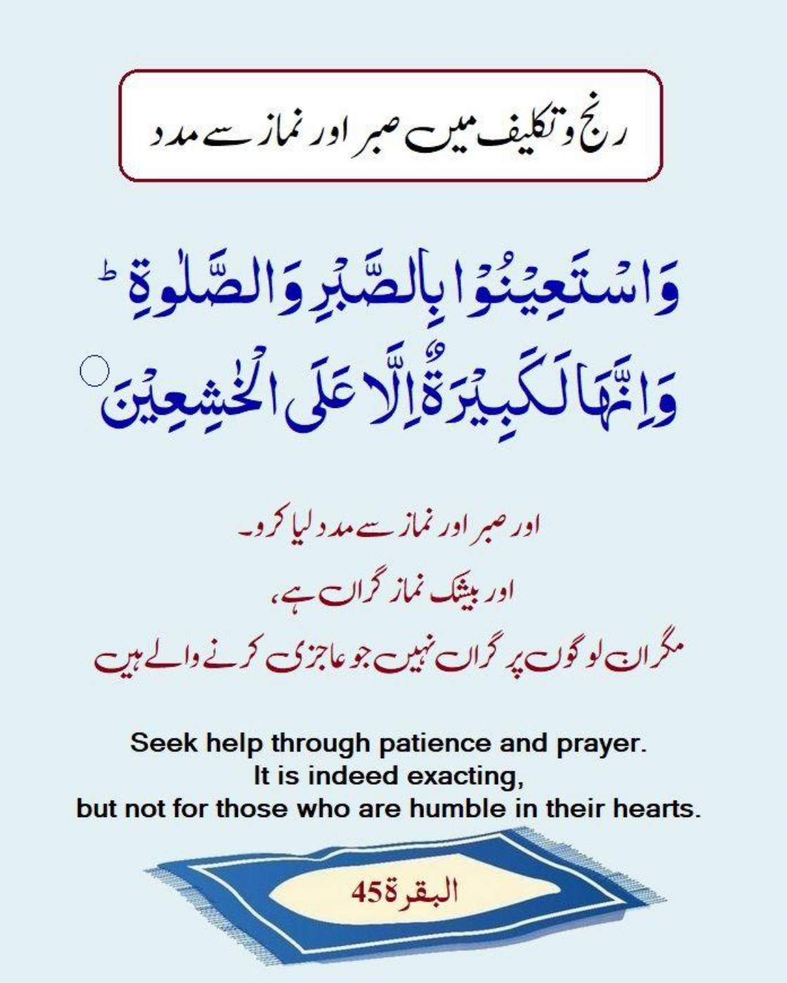 45. Wasta’eenoo Bissabri Was Salaah; Wa Innahaa Lakabee Ratun Illaa Alal Khaashi’een