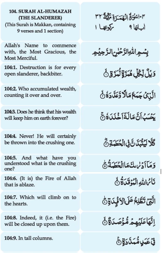 104. SURAH AL-HUMAZAH (THE SLANDERER)
