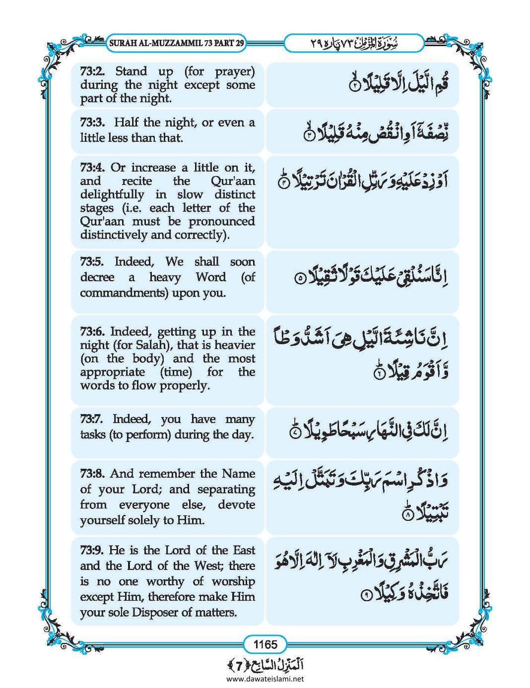 73. SURAH AL-MUZZAMMIL (THE ONE WHO WRAPS HIMSELF IN A SHAWL)