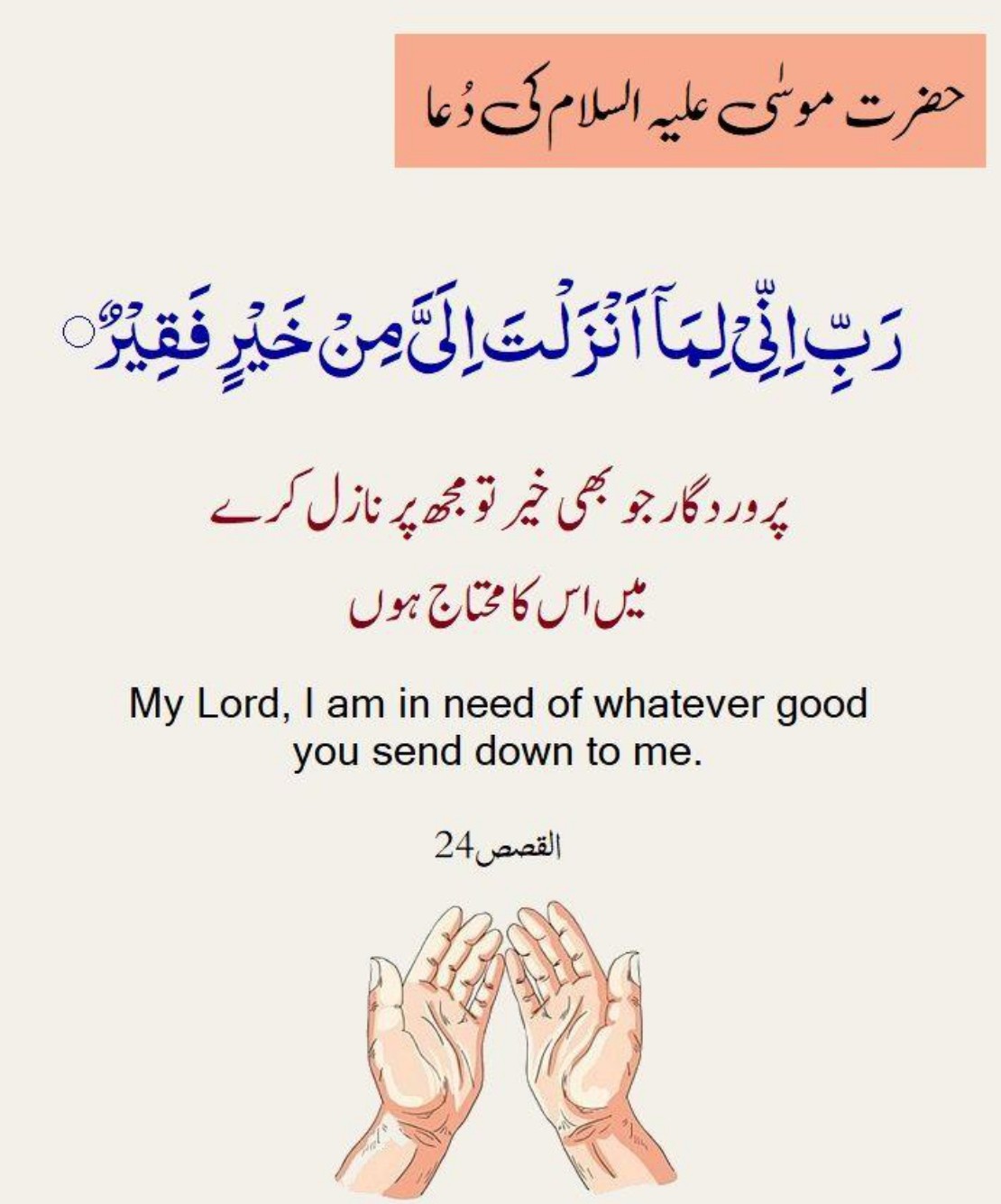 24. Fasaqaa Lahumaa Summa Tawallaaa Ilaz Zilli Faqaala Rabbi Innee Limaaa Anzalta Ilaiya Min Khairin Faqeer