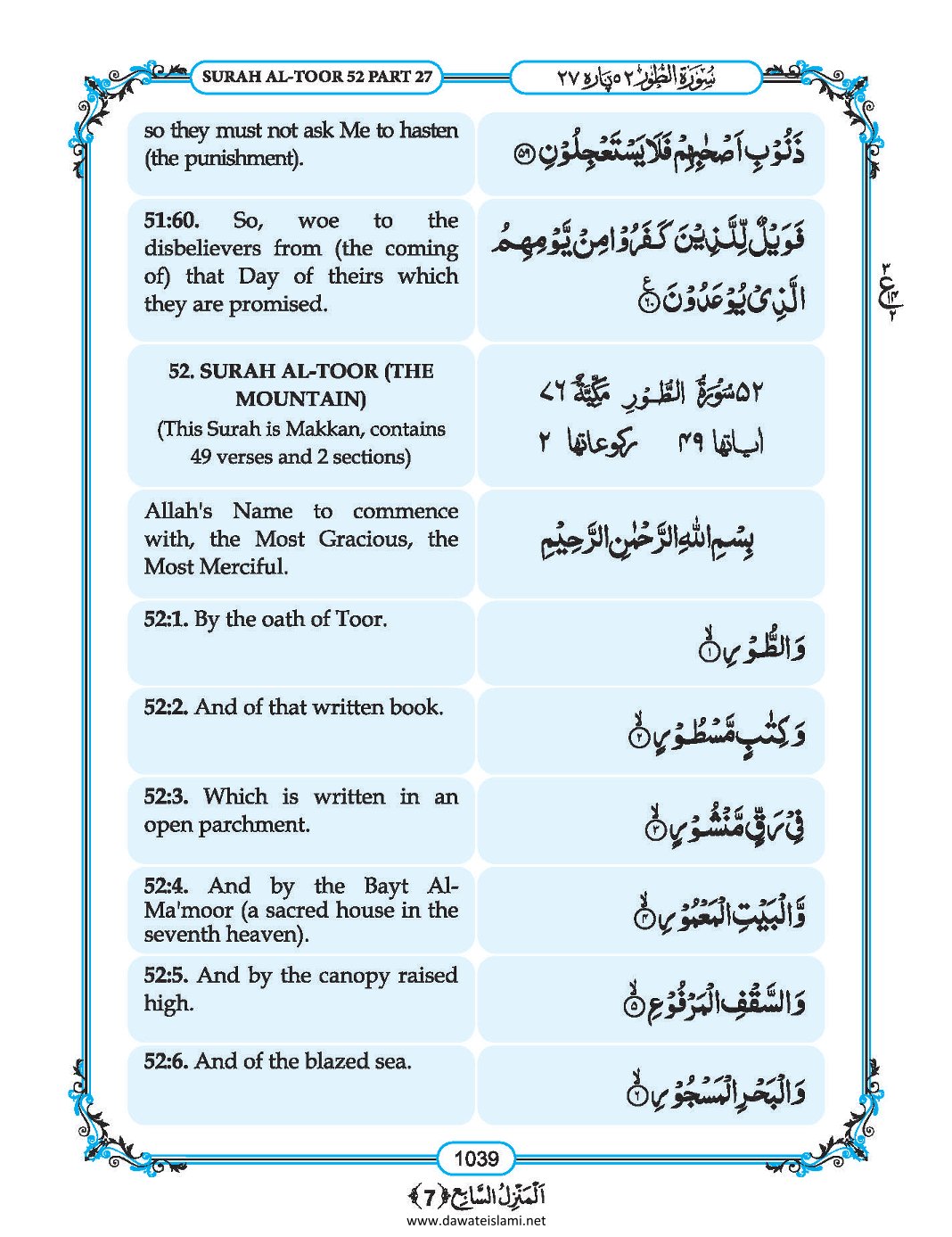 SURAH AL-TOOR English Translation & Roman Transliteration
