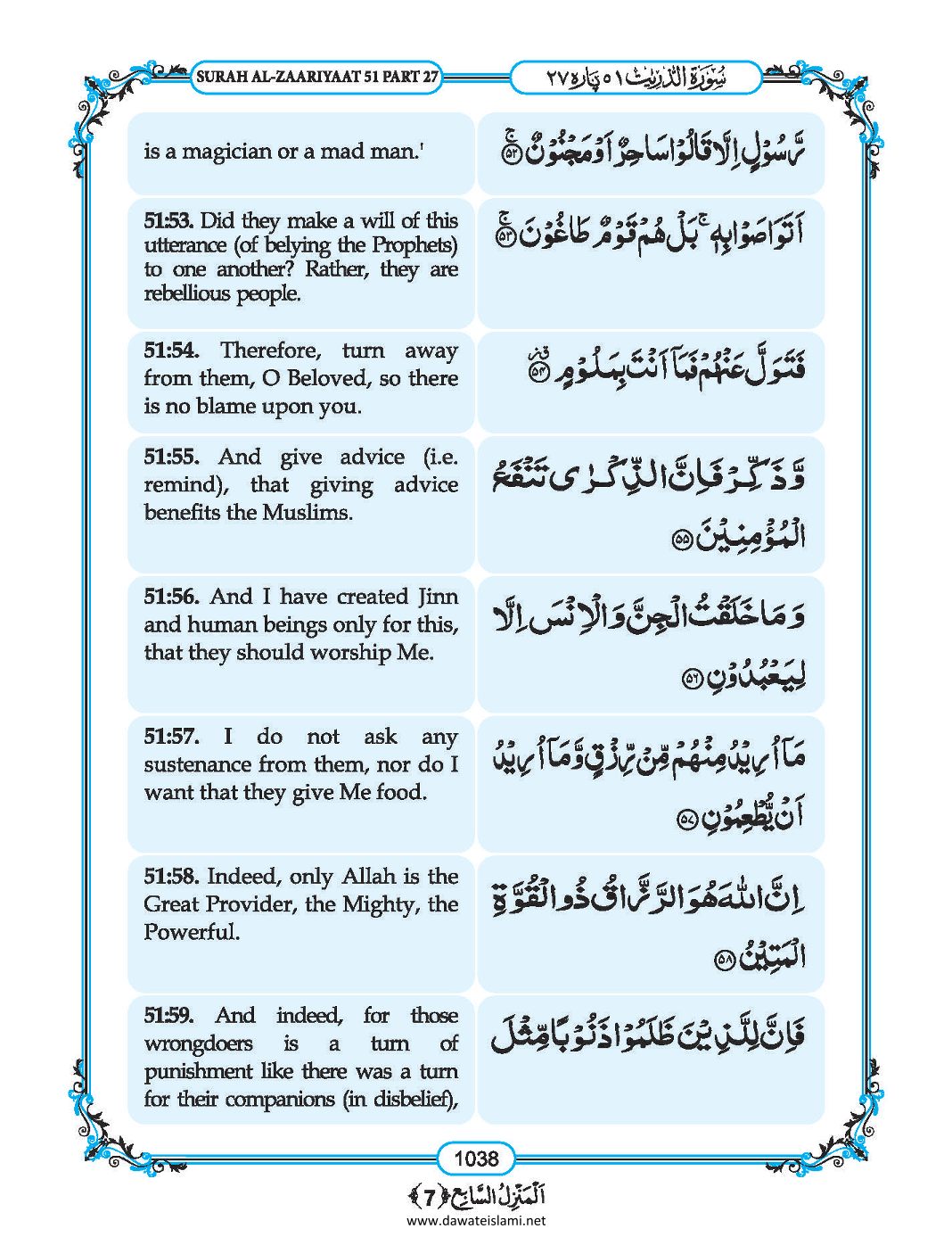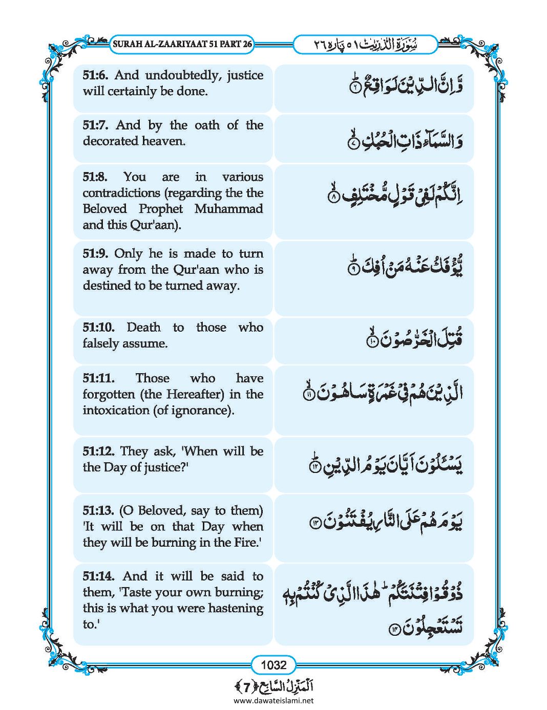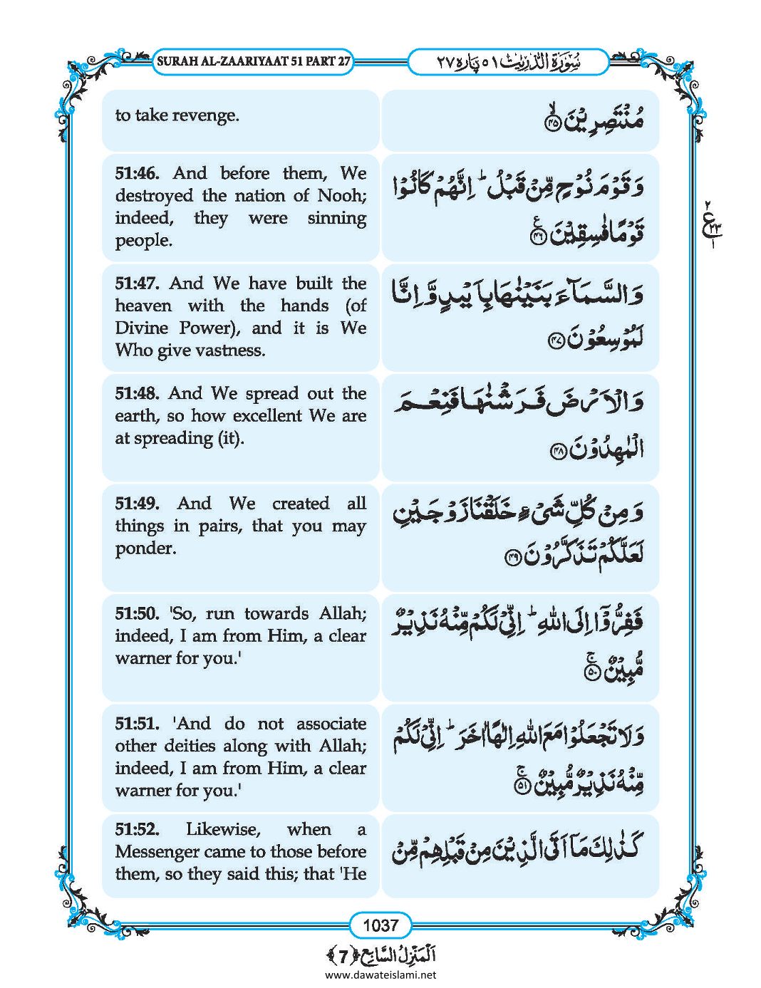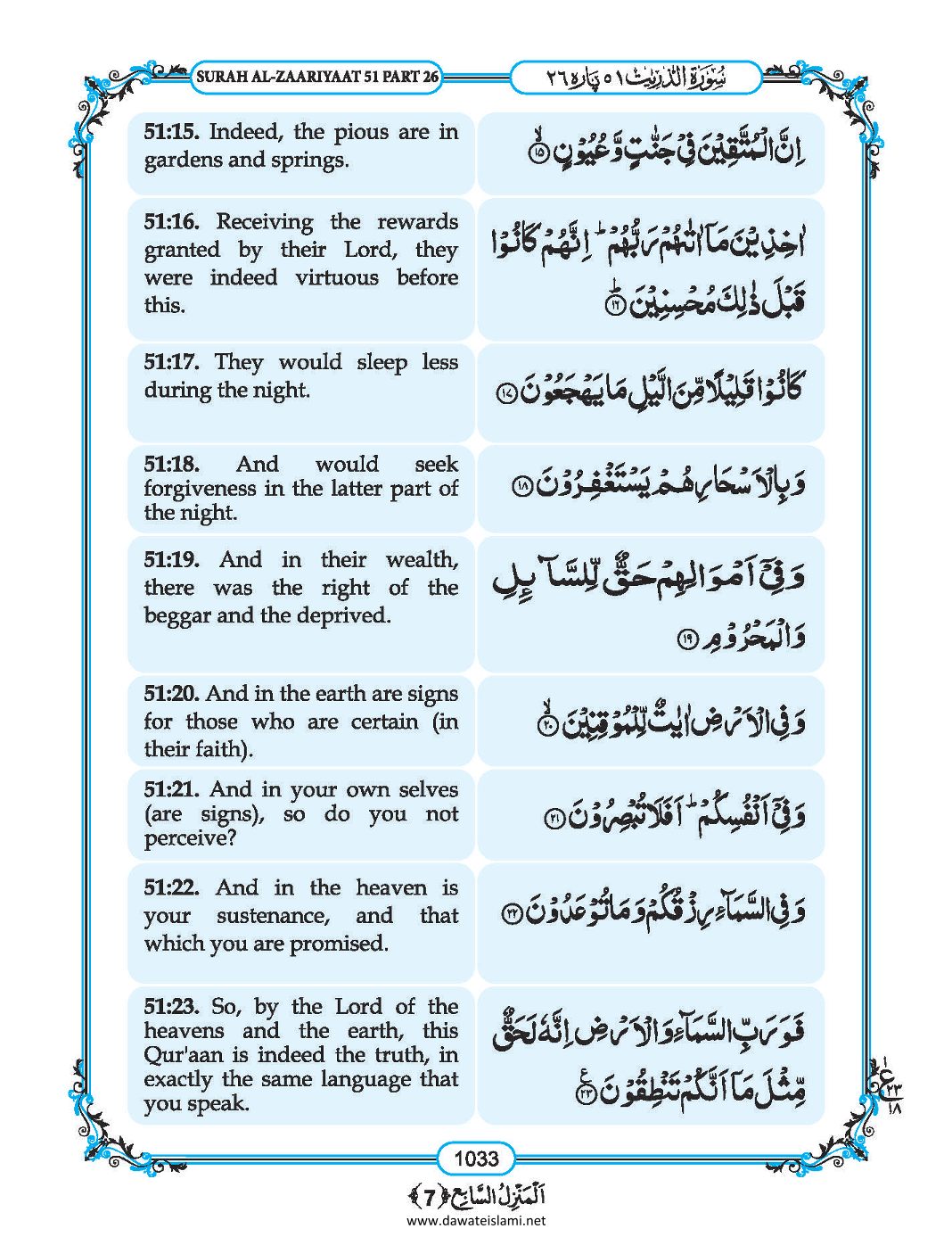 SURAH AL-ZAARIYAAT English Translation & Roman Transliteration