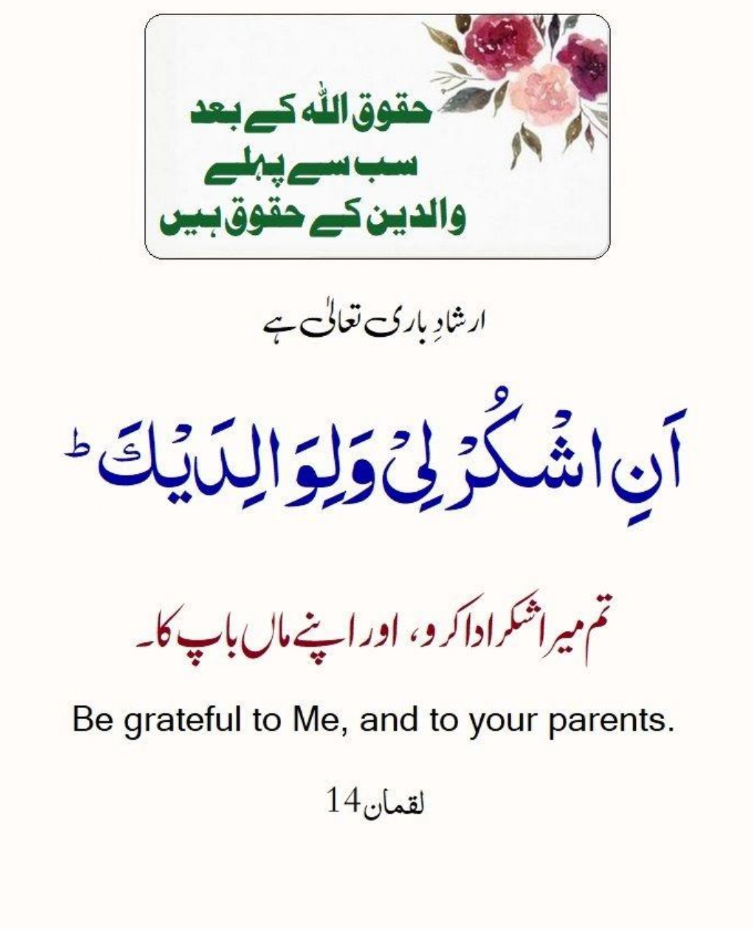 14. Wa Wassainal Insaana Bi Waalidaihi Hamalat Hu Ummuhoo Wahnan ‘Alaa Wahninw Wa Fisaaluhoo Fee ‘Aamaini Anishkur Lee Wa Liwaalidaika Ilaiyal Maseer