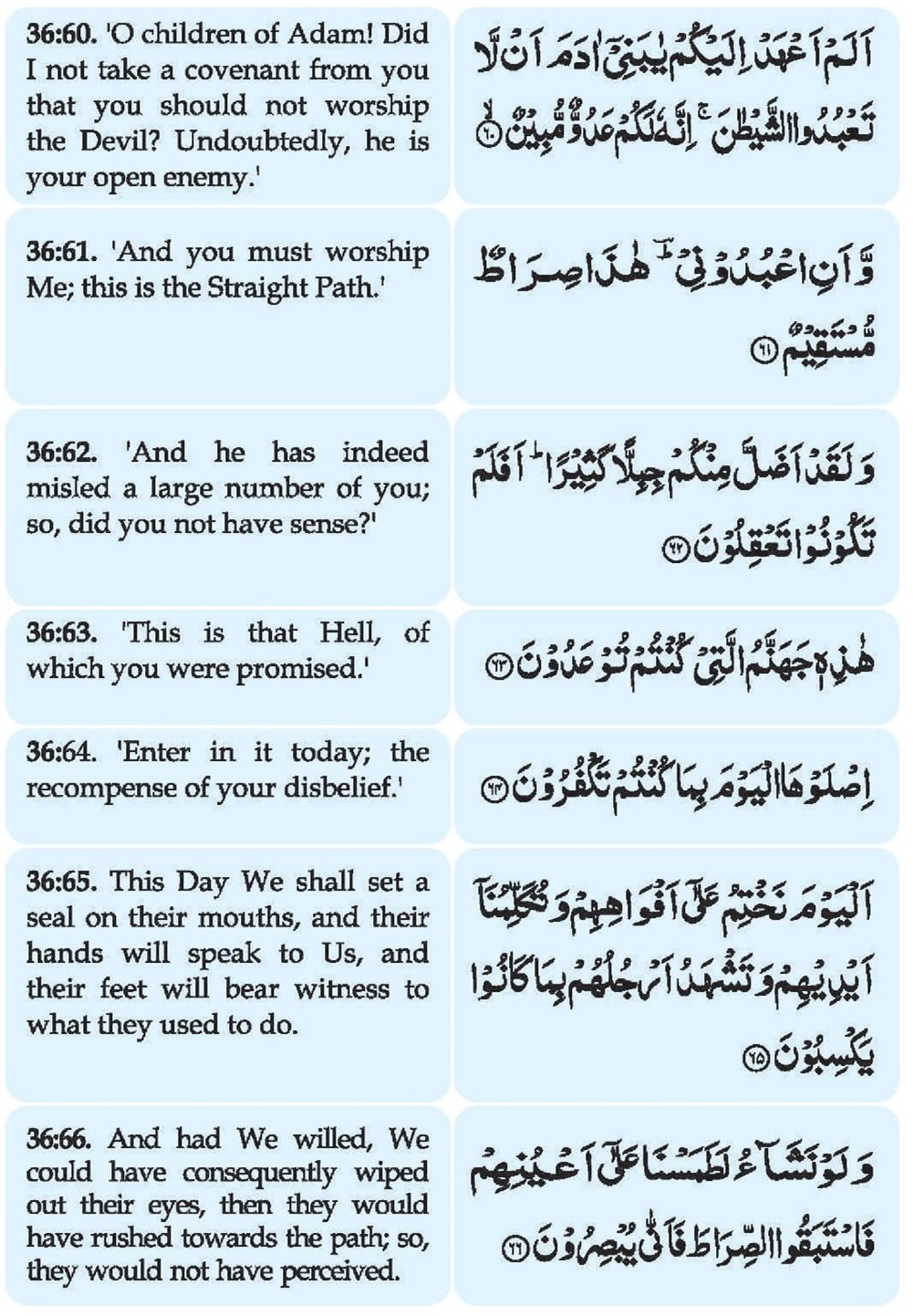 36:59. (It will be commanded) ‘And keep yourselves apart today (from the believers), O children of Adam! Did I not take a covenant from you that you should not worship the Devil? Undoubtedly, he is your open enemy.’