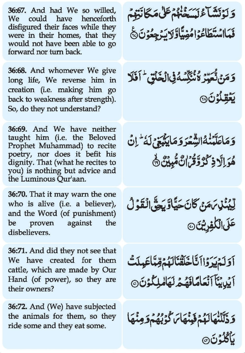 67. Wa Law Nashaaa’u Lamasakhnaahum ‘Alaa Makaanatihim Famas-Tataa’oo Mudiyyanw-Wa Laa Yarji’oon