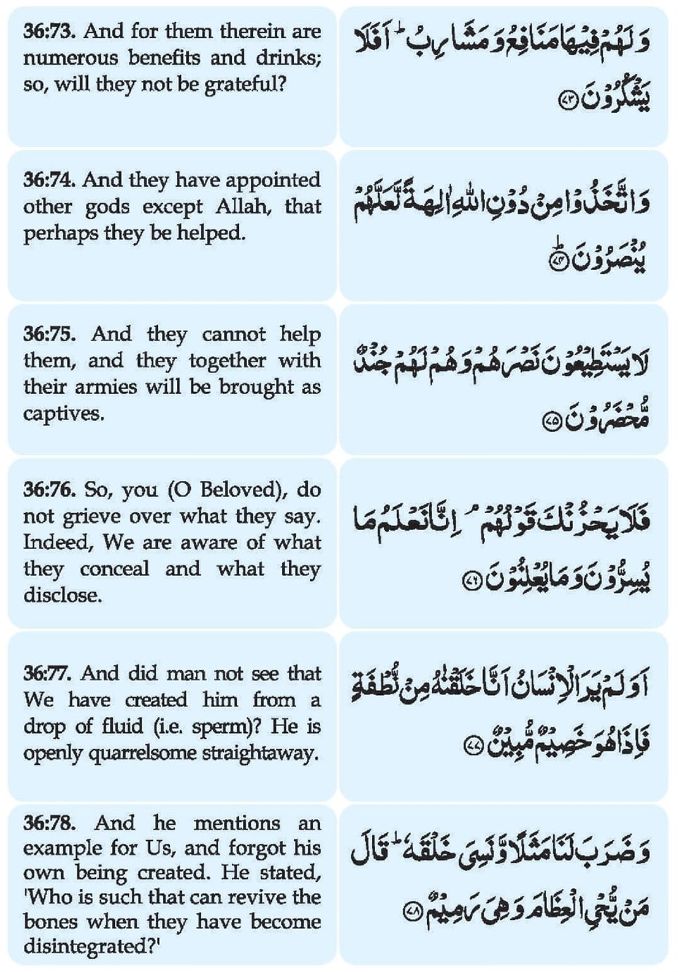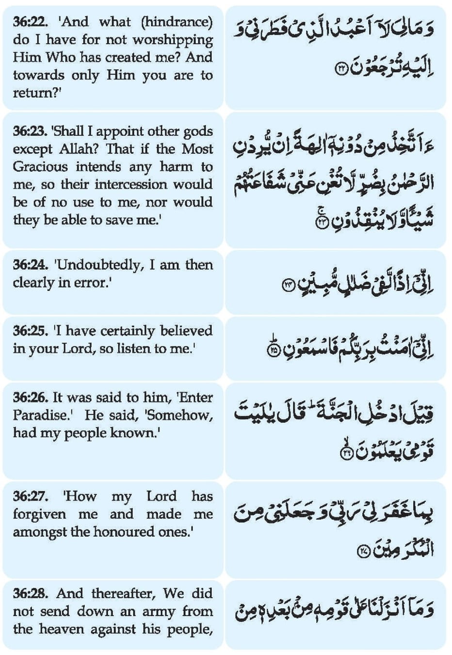 36:22. ‘And what (hindrance) do I have for not worshipping Him Who has created me? And towards only Him you are to return?’