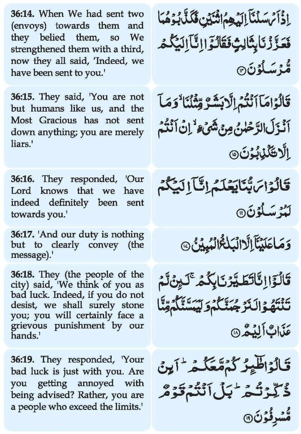 36:16. They responded, ‘Our Lord knows that we have indeed been sent towards you.’