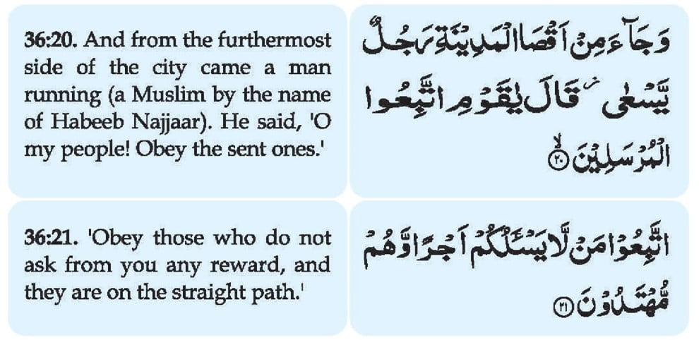 36:21. ‘Obey those who do not ask from you any reward, and they are on the straight path.’