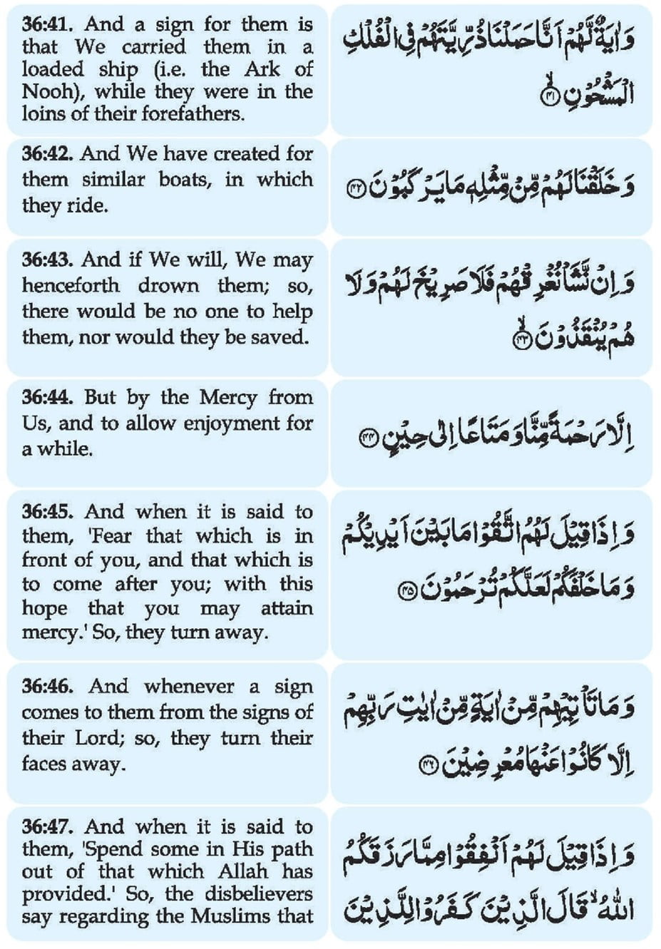 36:45. And when it is said to them, ‘Fear that which is in front of you, and that which is to come after you; with this hope that you may attain mercy.’ So, they turn away.